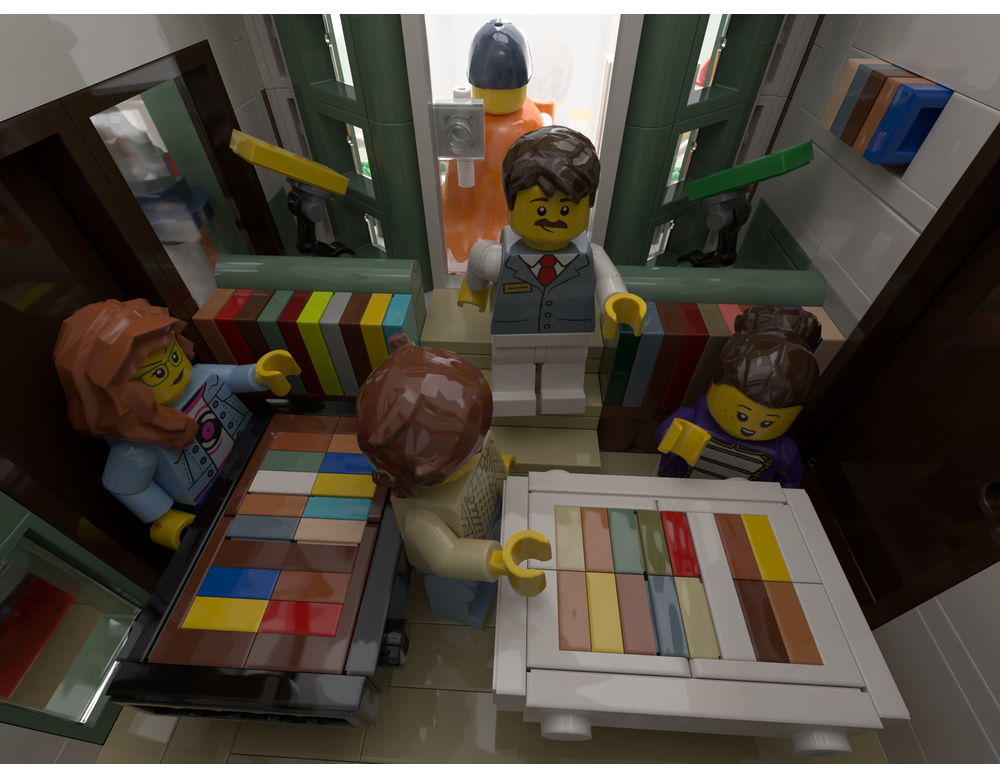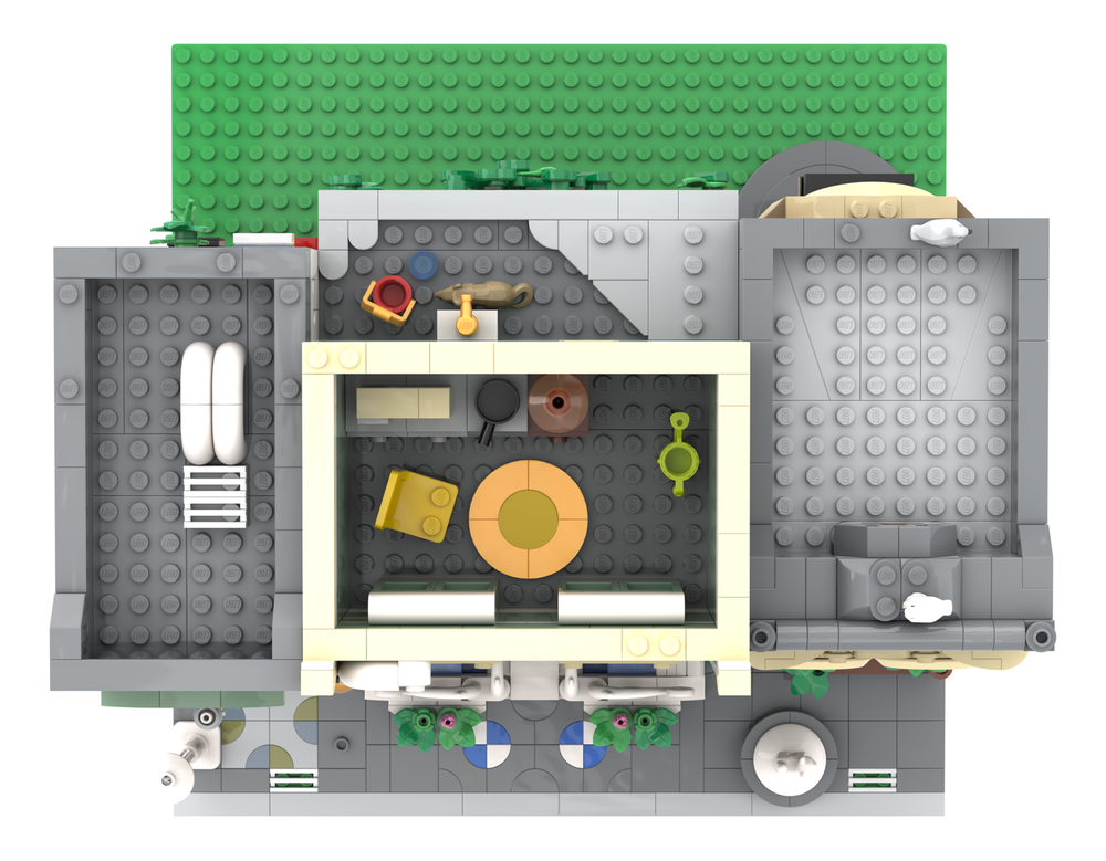 The central building is a Comic Shop, wedged between two narrower ones. Inside are a ton of details including racks full of Comics, a living space, and more. I’ve yet to build my copy of the LEGO Shopping Street (11371) but from the reviews I’ve read the inside lacks detail, this alternative build looks as though it’s crammed to the rafter. Many fans may prefer this to the original, as it was not widely accepted by many AFOLs. The size of the set remains the same and the pieces used are done to good effect, it looks stunning and rather grandeur. Petrus Odyssey has done a great job in designing and building this alternate build, from the tiled walkway and exterior details, to the colour scheme of dark blues, whites and dark tan.
