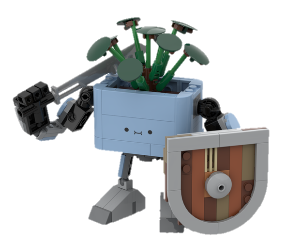 The LEGO Botanicals Happy Plants (10349) set was a surprise to everyone, it came out of nowhere and captured the hearts of fans the world over. Consisting of just over 200 pieces and retailing for £17.99, the set was a sure fire hit, selling out on LEGO.com when it dropped a few months ago. As mentioned before the set is very sweet & cutesy looking, with dumpy flowerpots with smiles on their faces and little green plants growing from them. So when perusing Rebrickable for Mods and MOCs to share, I stumbled across the ultimate addition to transform your Happy Plants into Mech, complete with a shield & sword.