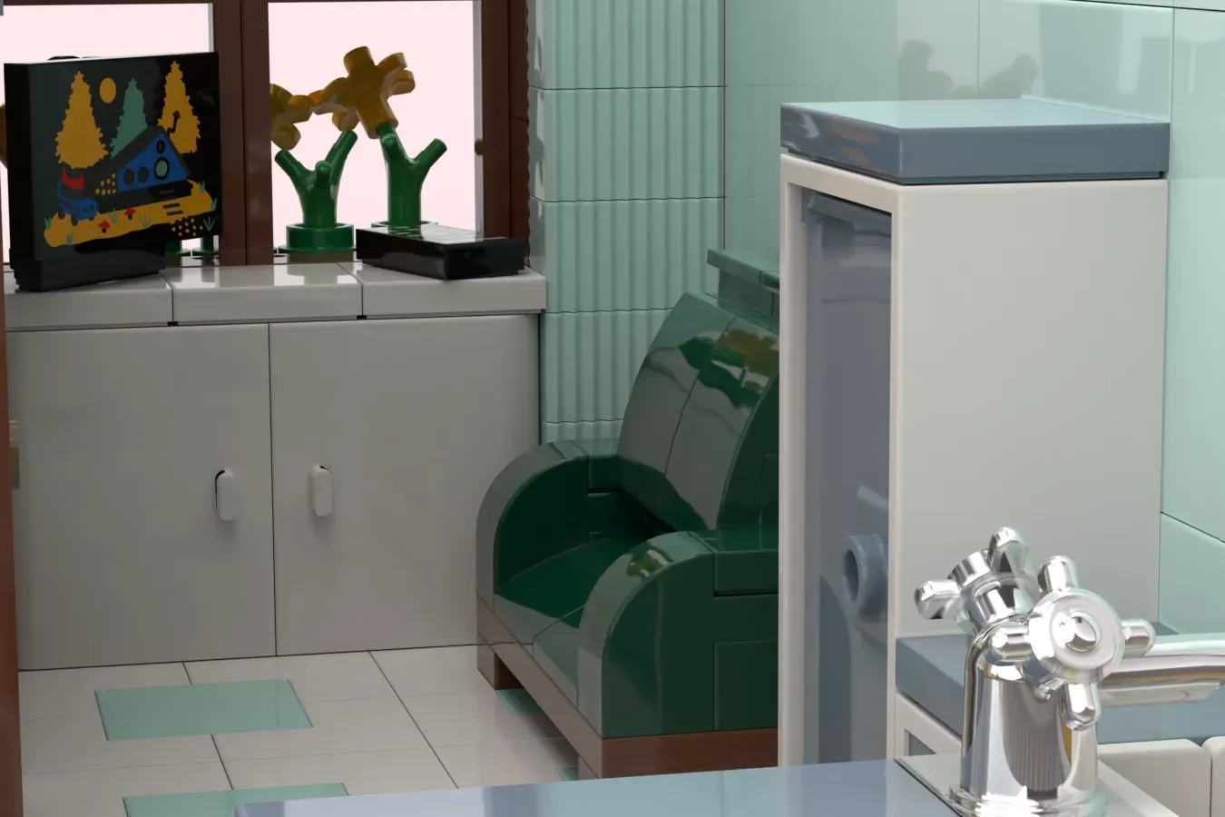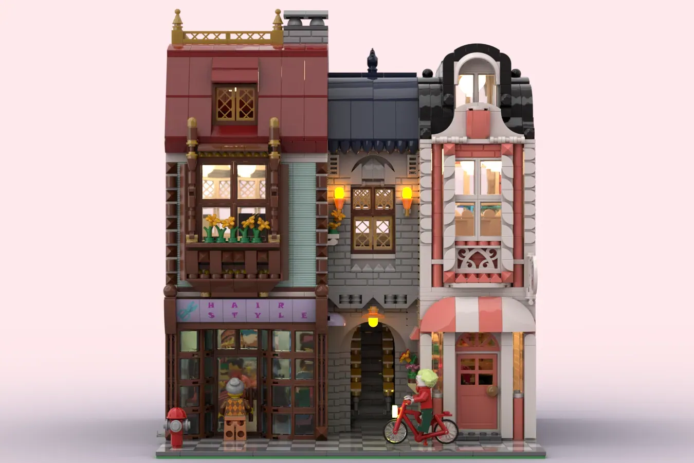 From the talented mind of Santheg, comes a lovely looking building that would slot into any fans City with ease, mine included. The design looks amazing and the colour scheme used is a freshing mix of soft pastel pinks & greens and harsh reds & blues. It also focuses on two very different shops, a hairdresser and a Perfumery, uniquely different but also go hand-in-hand with each other.