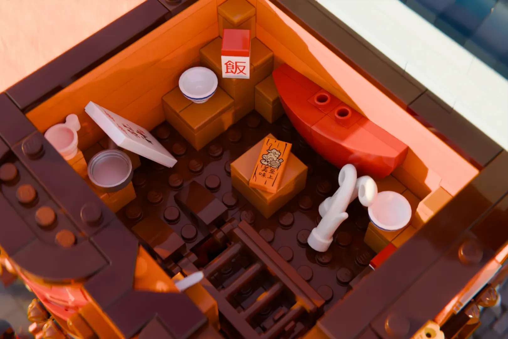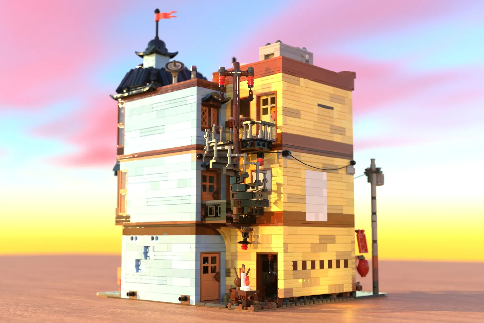The modular building overall is a place rich with stories to discover. From the hanging lanterns to the waving banners, Makoto Markets is a testament to the deep culture and character of Bricksburg. Making a fine addition to any town, this building fits right in with others, as well as being an impressive centerpiece on its own.