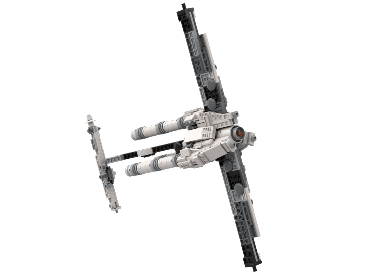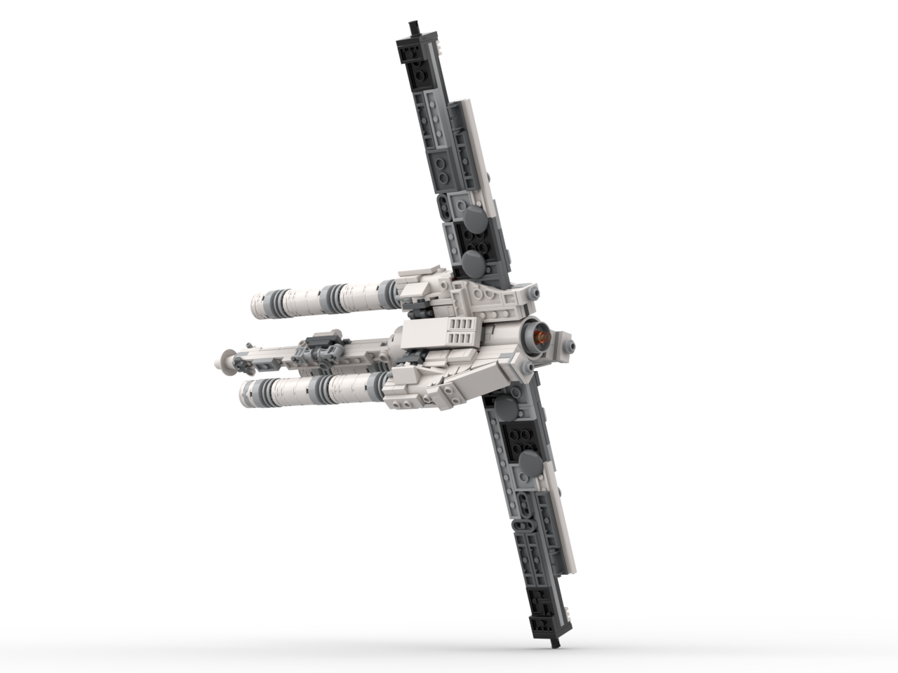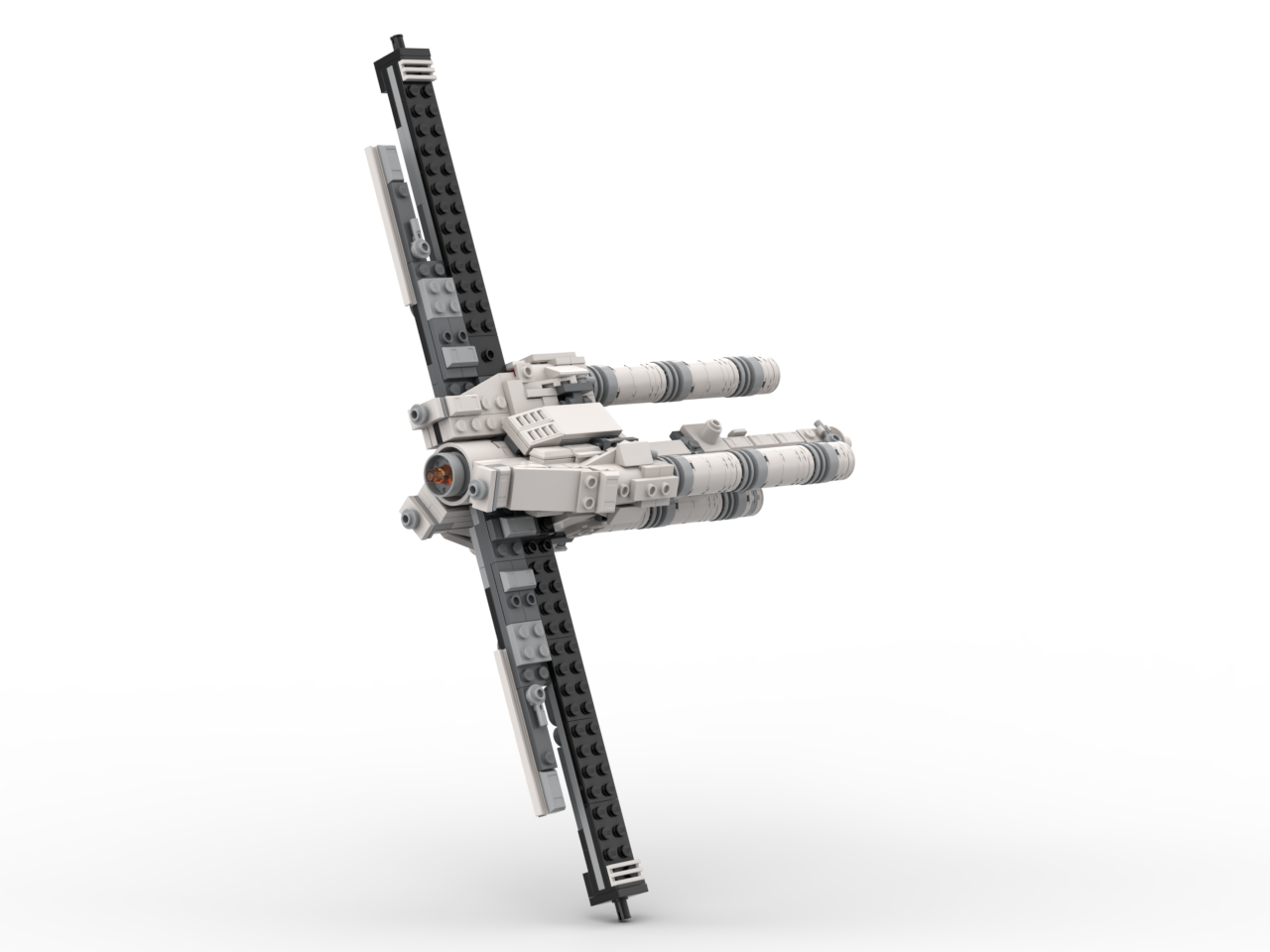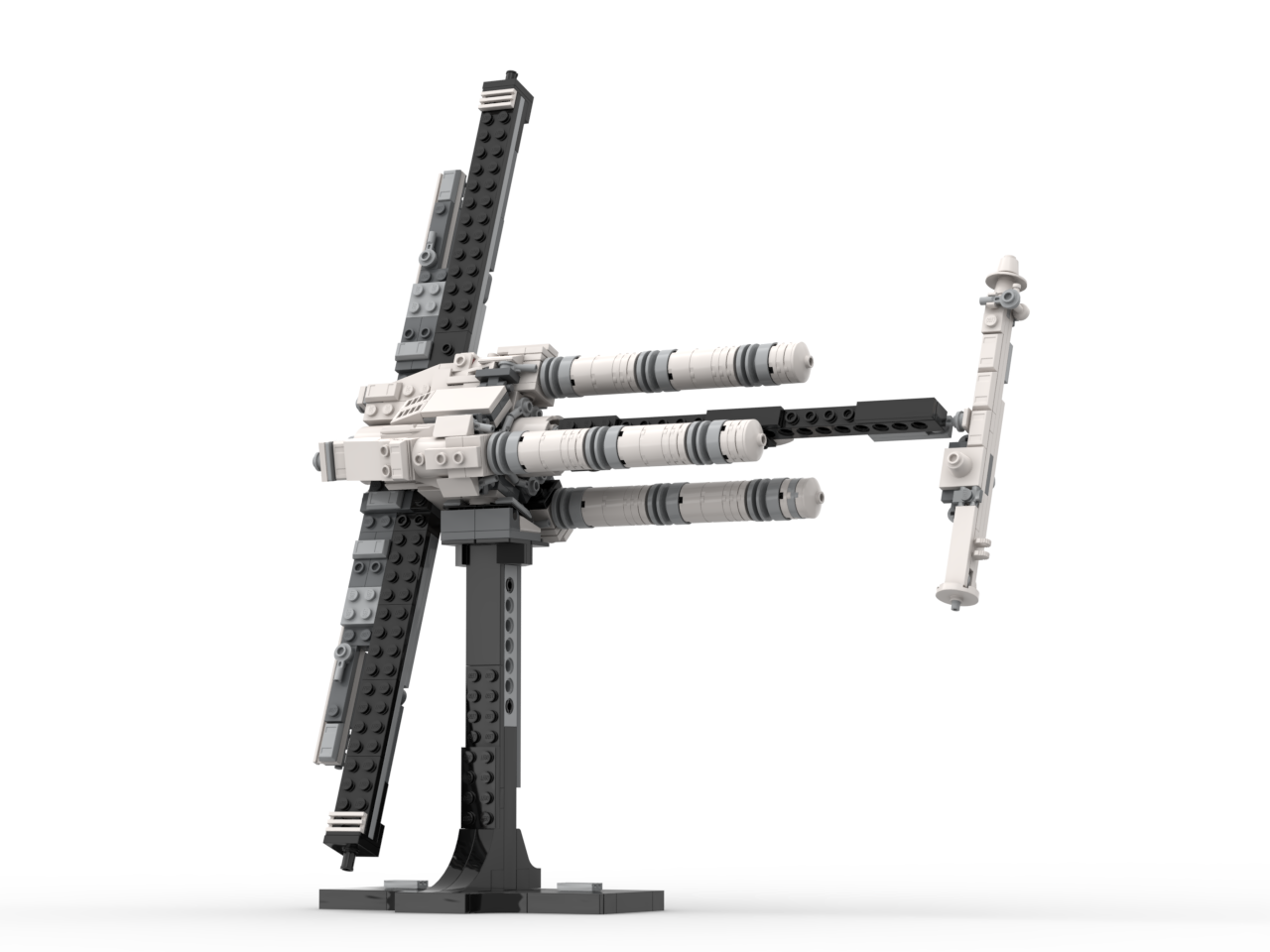 The ship in very stable, with its triangular Technic-built core and reinforced solar panel wings. The model comes with a beam attachment to allow for the centrifuge mode! This upgraded version is larger and more detailed than the original micro-version, allowing for smoother shaping and a more refined silhouette while staying efficient and part-conscious. If you have the LEGO Tantive IV (75376) set, and want a refresh for your shelf, check out this alternate build!
