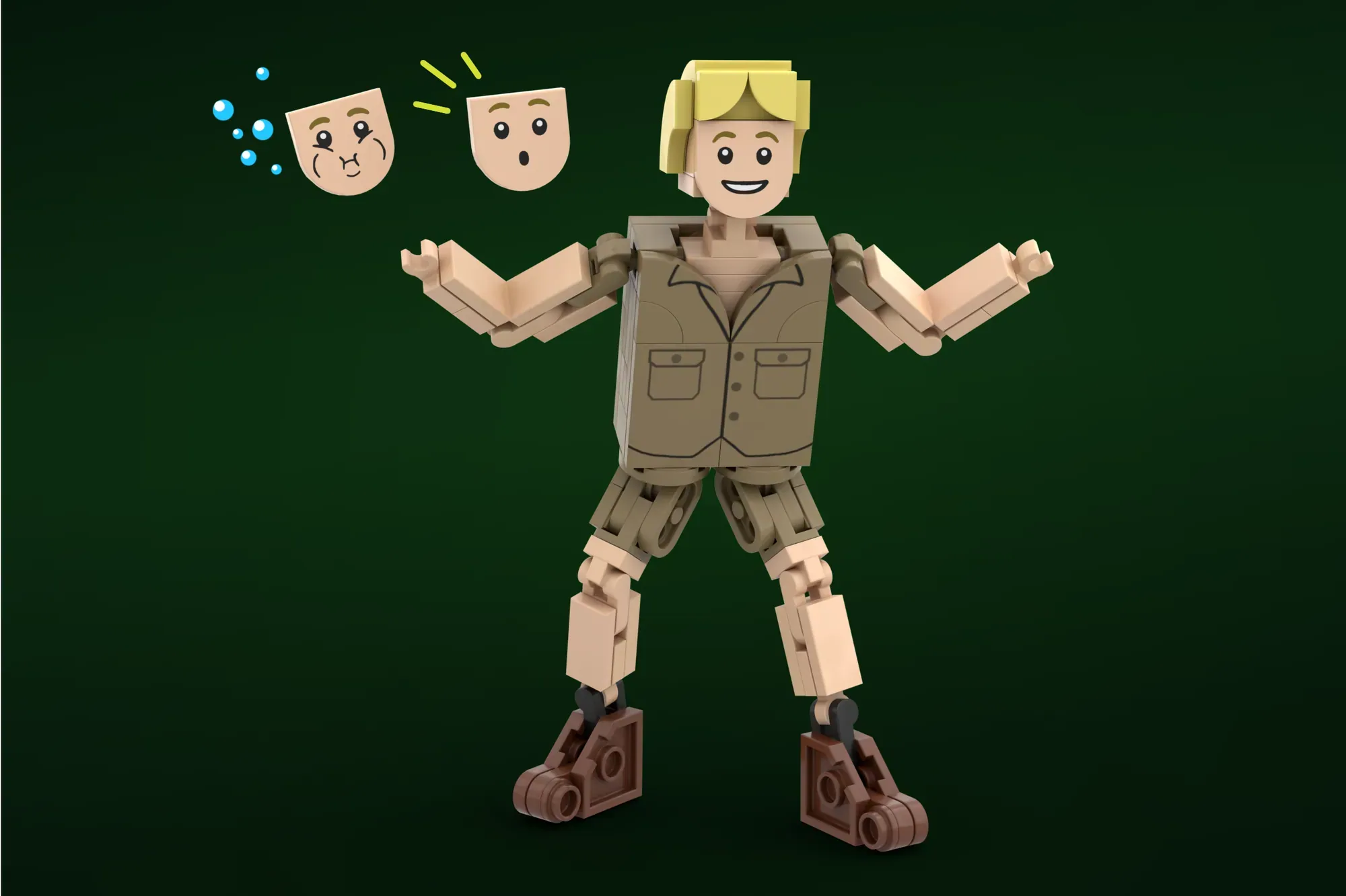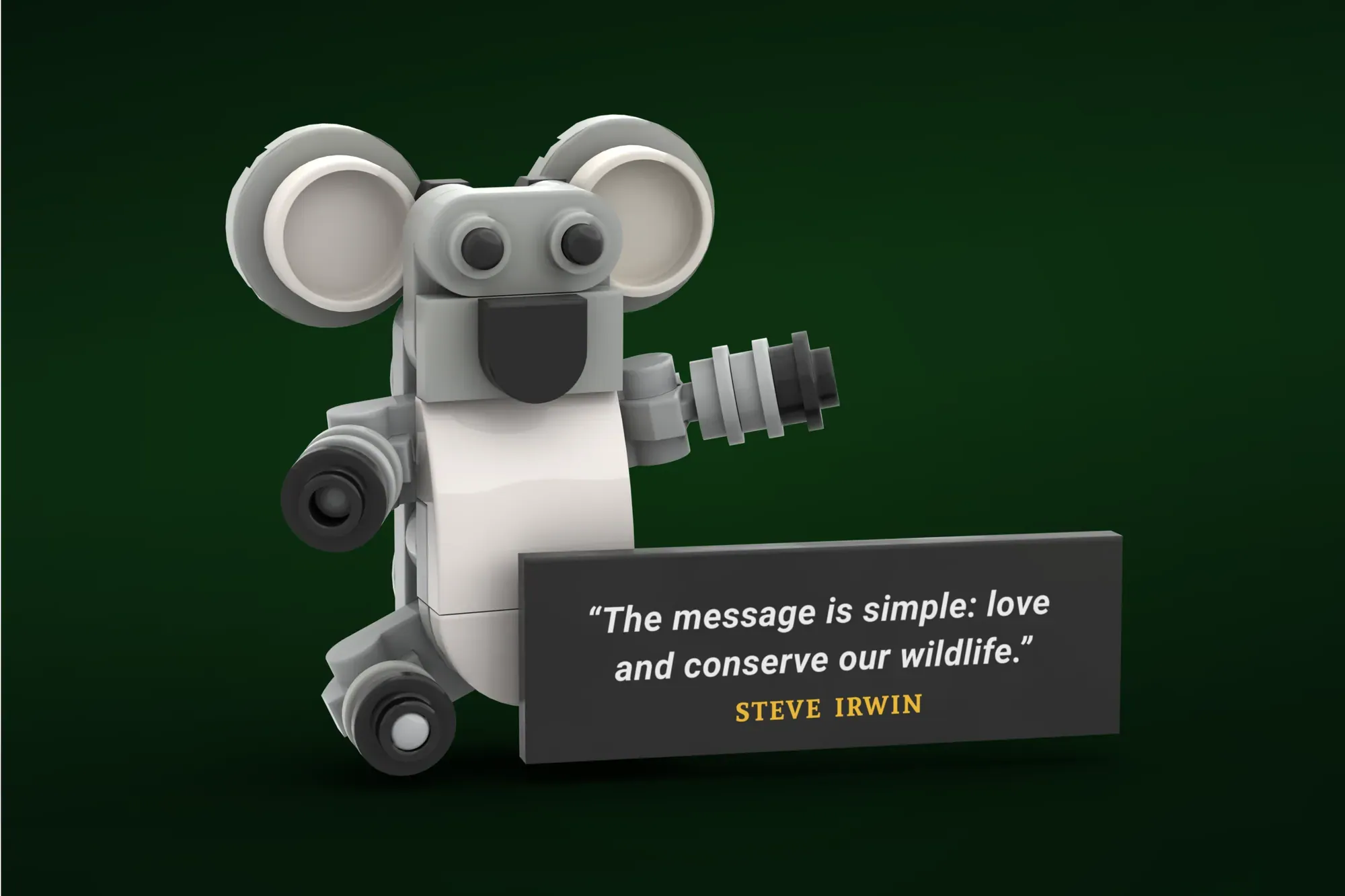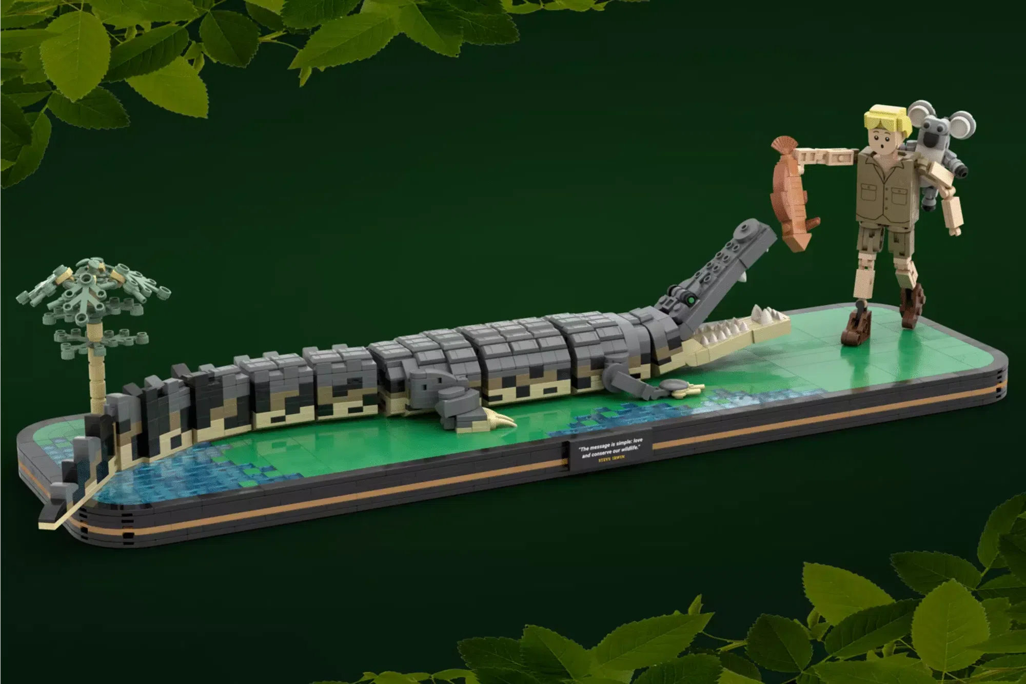 From the talented mind of King of Crocs, comes a brick-built recreation of the late, great, man himself, Steve Irwin, accompanied by a magnificent Crocodile and cute Koala. This isn’t the first time the creator has submitted an idea based on the legend, sadly it wasn’t approved but it’s back with a few updates, including a buildable figure. Also in the idea is a Saltwater Crocodile, with posable limbs, tail, body, upper and lower jaw, a Koala with posable limbs, that is able to hang on a tree or Steve‘s back, a double sided display base, one side for a land scene, the other for an underwater scene, and decorative pieces like a young Australian Eucalyptus tree and a fish.