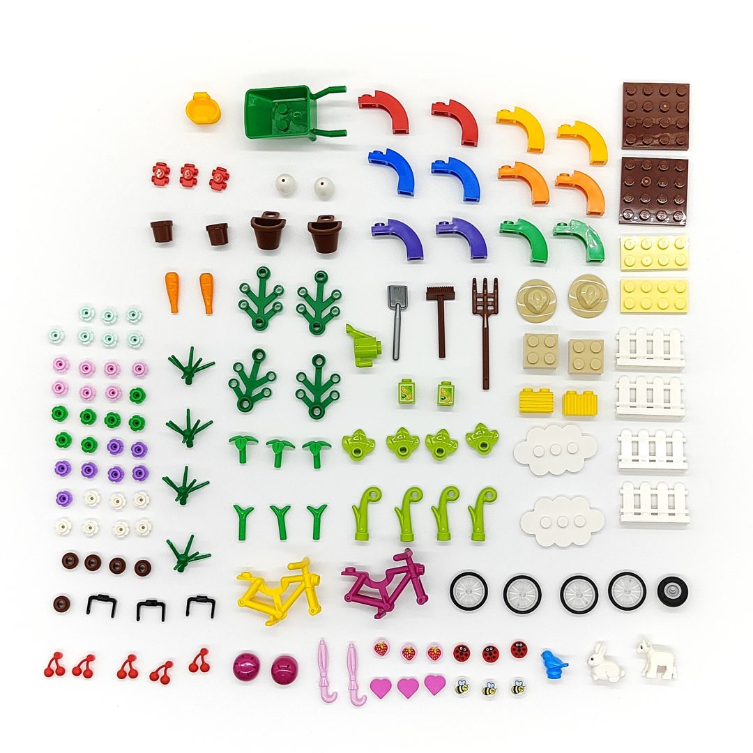 Take a look at the images below to get a better understanding of what comes bundled in the LEGO VIP Spring Fun Add-on Pack (40606).
