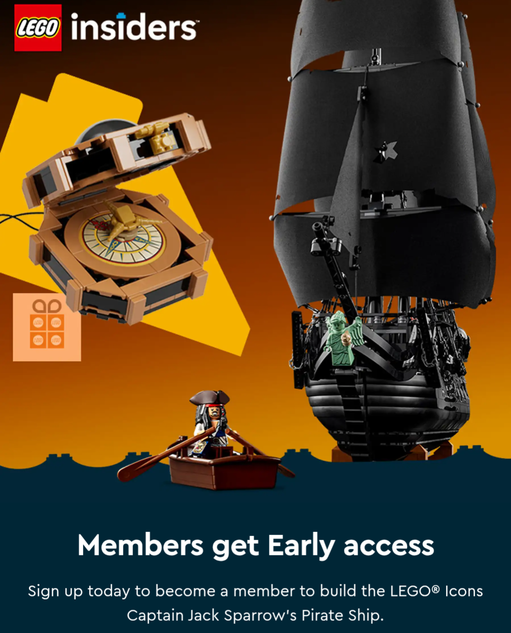 LEGO has revealed a tie-in gift with purchase for the recently announced LEGO Icons Captain Jack Sparrow’s Pirate Ship (10365), introducing Captain Jack Sparrow’s Compass (5009609)!