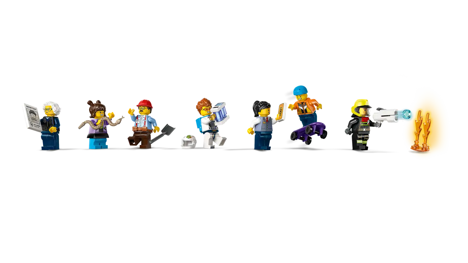 The LEGO City Tower stands tall with three levels, featuring a vibrant metro station and neighbouring police and fire stations. Kids can immerse themselves in action-packed scenarios as they launch a spaceship from the rooftop launchpad, operate a construction crane, and perform stunts on the giant skate ramp. With seven minifigures, including a firefighter, train driver, and five characters from the LEGO City No Limits TV show, the play possibilities are endless!