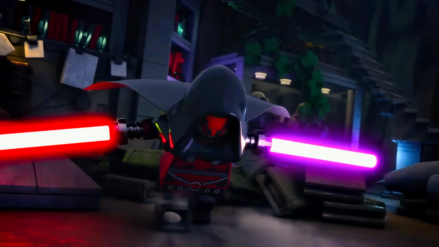 A fan favourite character, Darth Revan, is returning to LEGO form in the upcoming computer animated Disney+ show. He is a fallen Jedi who was first introduced in the BioWare Star Wars Knights Of The Old Republic. The first LEGO version of the character was back in 2014 when the Darth Revan Minifigure was available as a gift with purchase for the then LEGO May the Fourth promotion. As seen in the newly release clip, the character has seemingly held onto his and battles the heroes of the story.