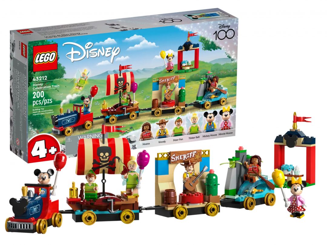 • The LEGO Disney Celebration Train (43212) calls all young Disney fans to jump aboard and join in the anniversary celebrations. The parade train features beloved Disney and Pixar characters from Mickey Mouse and Minnie Mouse, Moana, Peter Pan, and Toy Story on bespoke parade floats. The set will be on sale from 1st April price at 39.99 EUR / $39.99/34.99 GBP/49.99 CAD/59.99 AUD.