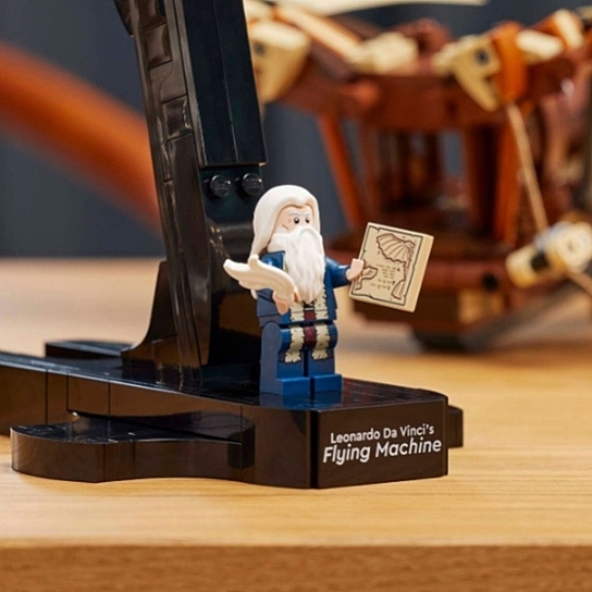 Box contents: Everything you need to build a detailed LEGO® interpretation of da Vinci’s visionary winged aircraft, plus a stand and the Leonardo da Vinci minifigure with pen and sketch