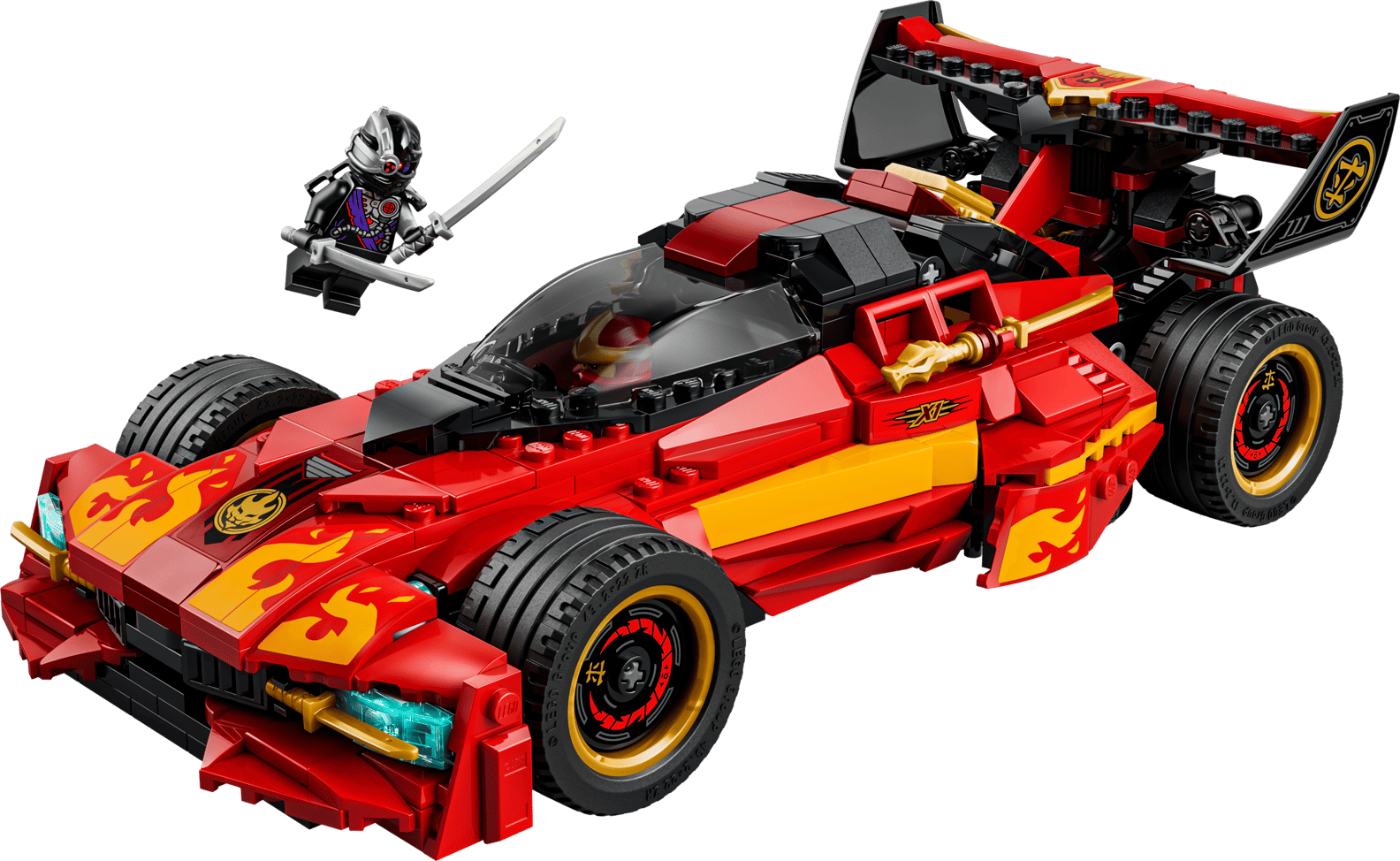 - 2-IN-1 CAR – Lift the hood on this updated remake of the original X-1 Ninja Charger (70727) to launch a hidden motorcycle toy with moving wheels