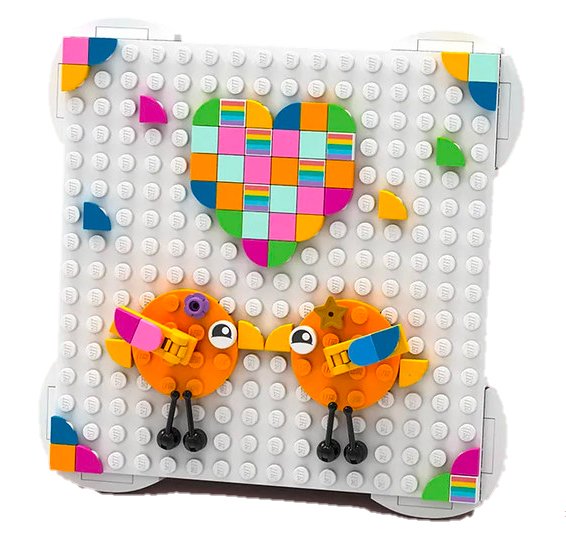 The Love Birds Greeting miniset is the latest build to be added to the popular online LEGO Pick-A-Brick service. You can either add the required parts to your basket and checkout as usual or download the instructions and build it using your spares. It features a white 16×16 plate that is colourfully decorated with various DOTS and tiles to create two love bird designs.