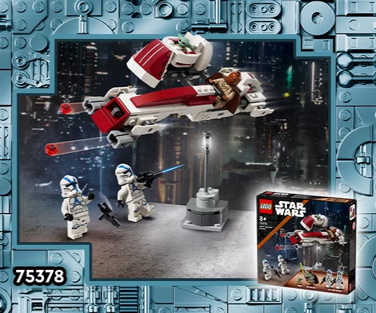 BARC Speeder Escape (75378) is based on a flashback scene from the third season of The Mandalorian on Disney+. In the episode, Grogu the youngling was rescued from Anakin and the 501st attack on the Jedi Temple by Jedi Kelleran Beq. The set features a BARC Speeder, two 501st Troopers, Grogu and Kelleran Beq.