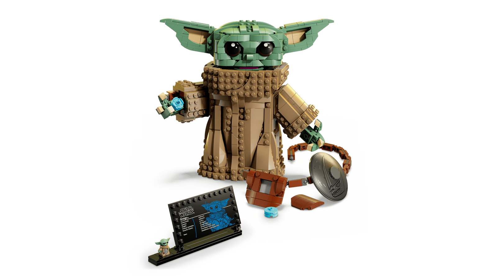 - FANTASY DECOR – Display the main buildable toy model with the Grogu info plaque and standard-size Grogu LEGO® Star Wars™ figure