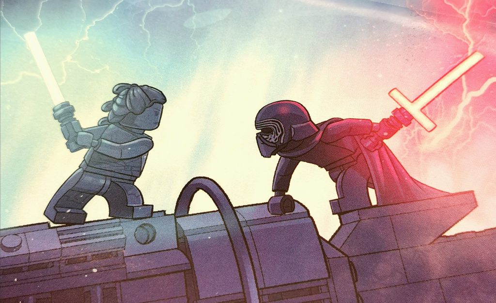 There is a double sided poster. In the centre pages. One side sees R2D2 in action, the other is a LEGO render of the now iconic scene of Rey and Kylo Ren facing off against each other from The Rise of Skywalker