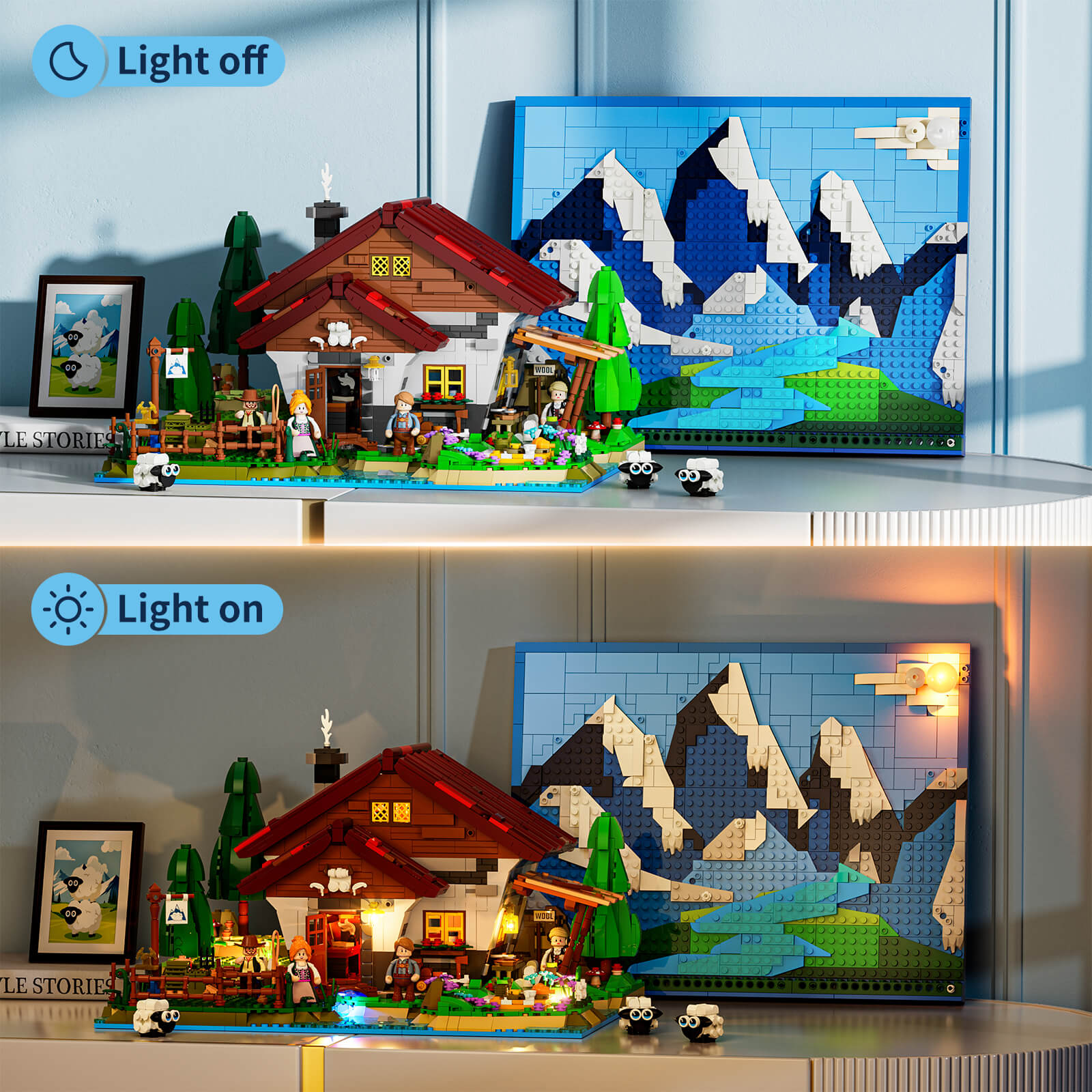The latest set from LumiBricks is here, it introduces a combination of quaint Shepherd’s Cottage and an Alpine art-style background to the Farm Life theme. LumiBricks‘ first Alpine pasture theme faithfully recreates the distinctive features of Alpine pastoral landscapes from multiple angles. Lighting seamlessly integrates with architecture, recreating the cozy ambiance of an Alpine shepherd’s hut. As day transitions to night, it reveals enchanting radiance and a captivating narrative. Foreground and background panels can be used independently or combined, featuring quick-release functionality to adapt to diverse scenarios like sand tables and desktop displays. Simulate three sheep-herding scenarios, including daily flock care, dairy production, and wool processing—from shearing to finished goods. 1F Indoor: Shepherd’s living and daily activity space.