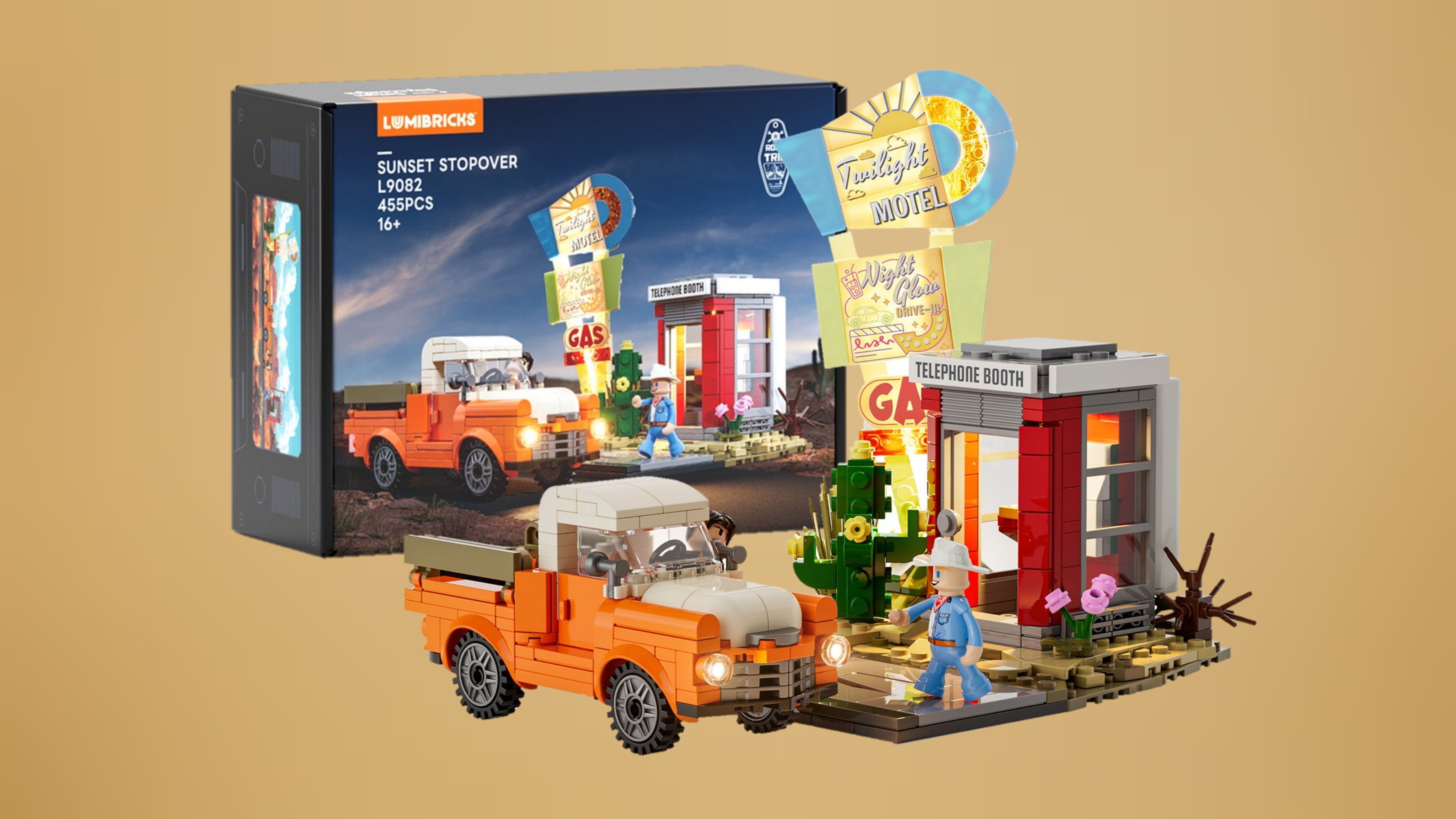 Listen to this article The LumiBricks (FunWhole) Sunset Stopover (L9082) set is now available! The latest addition to the Road Trip theme from LumiBricks is here, it looks neatly compact and introduces a small section of vintage American highway to the lineup. It’s Minifigure scale and packs a lot into a smaller sized set, including a traditional American pickup, a phone booth, illuminated signs, and a highway phone booth, it captures the western highway environment perfectly. The product includes 455 pieces, 3 numberee brick bags, 7 LED lights, and a clear assembly guide. The RRP is very affordable, coming in at around £22/$30. … Continue reading LumiBricks Sunset Stopover L9082 Available Now!