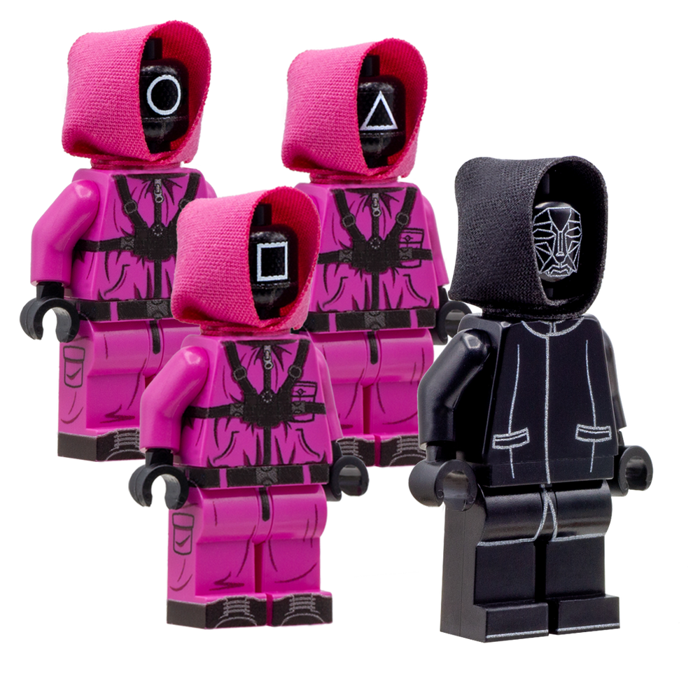 As a fan of the TV show, I myself want to pick up these custom LEGO Minifigures, they look just like their onscreen counterparts including the pink fabric hoods. The designs are spot on and the prints are bright, colourful and crisp, the faces are awesome and represent each of the shapes the guards wear 〇△□. The Front Man is especially good dressed all in black and with his face-shaped (printed) mask.