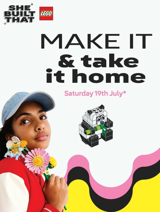 Calling all LEGO® fans! The Make and Take event is back, come build a creation in-store and take it home for free.