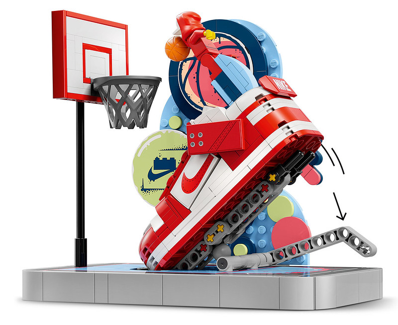 These bold new sets channel the swagger and style of sport, celebrating movement, creativity, and self-expression – core values that bring both brands together.Nike Slam Dunk x LEGO® Set lets you express your inner courtside champion by creating an awesome slam dunk scene from LEGO® bricks. Build a basketball player figure in the epic moment before they score a poster-worthy slam dunk and then have fun customizing their jersey and hairstyle.