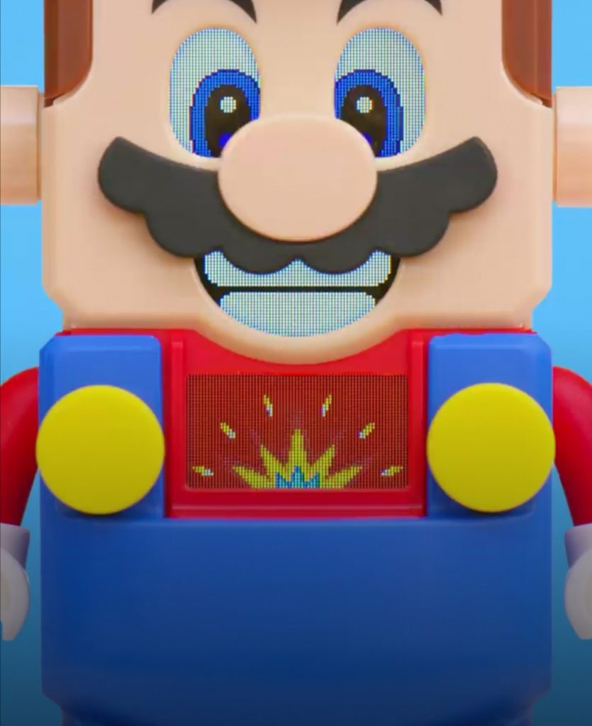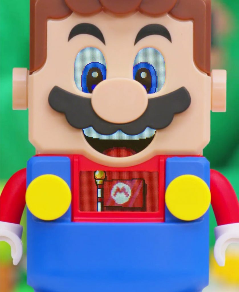 The display embedded in Mario’s chest interacts with the set, enabling the user to ‘play’ along.