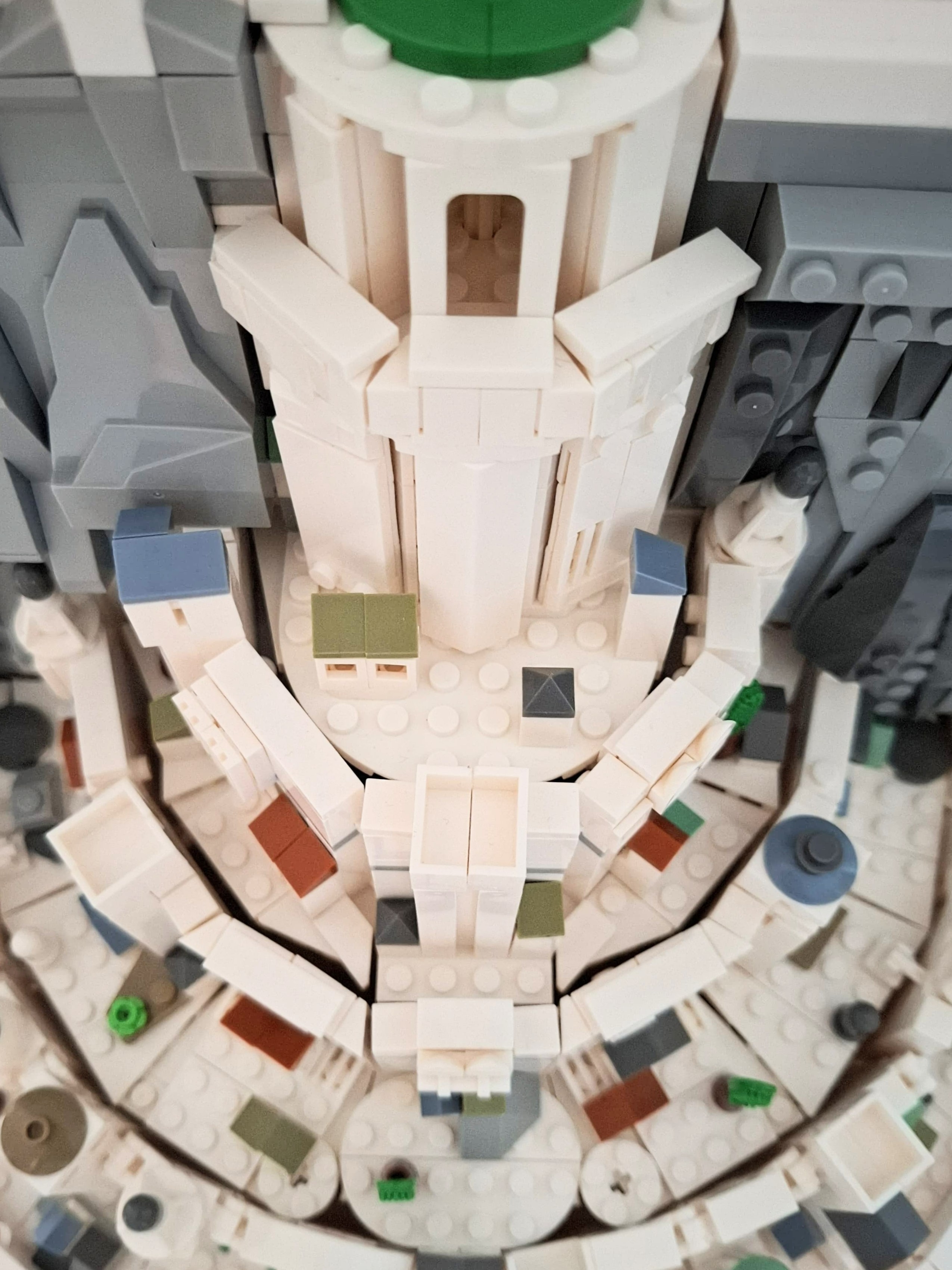 Now the build really is brilliant! Full of fascinating techniques with hinges and pin/socket connections to create the round shape of the city. Make sure to check out my TikTok and Instagram for a more detailed look at them. The city is split in half (based on the design in the film), created in 6/7 levels and is designed in microscale with headlight pieces being used predominantly to create windows and doorways. I also love the use of the hairbrushes as the trees!