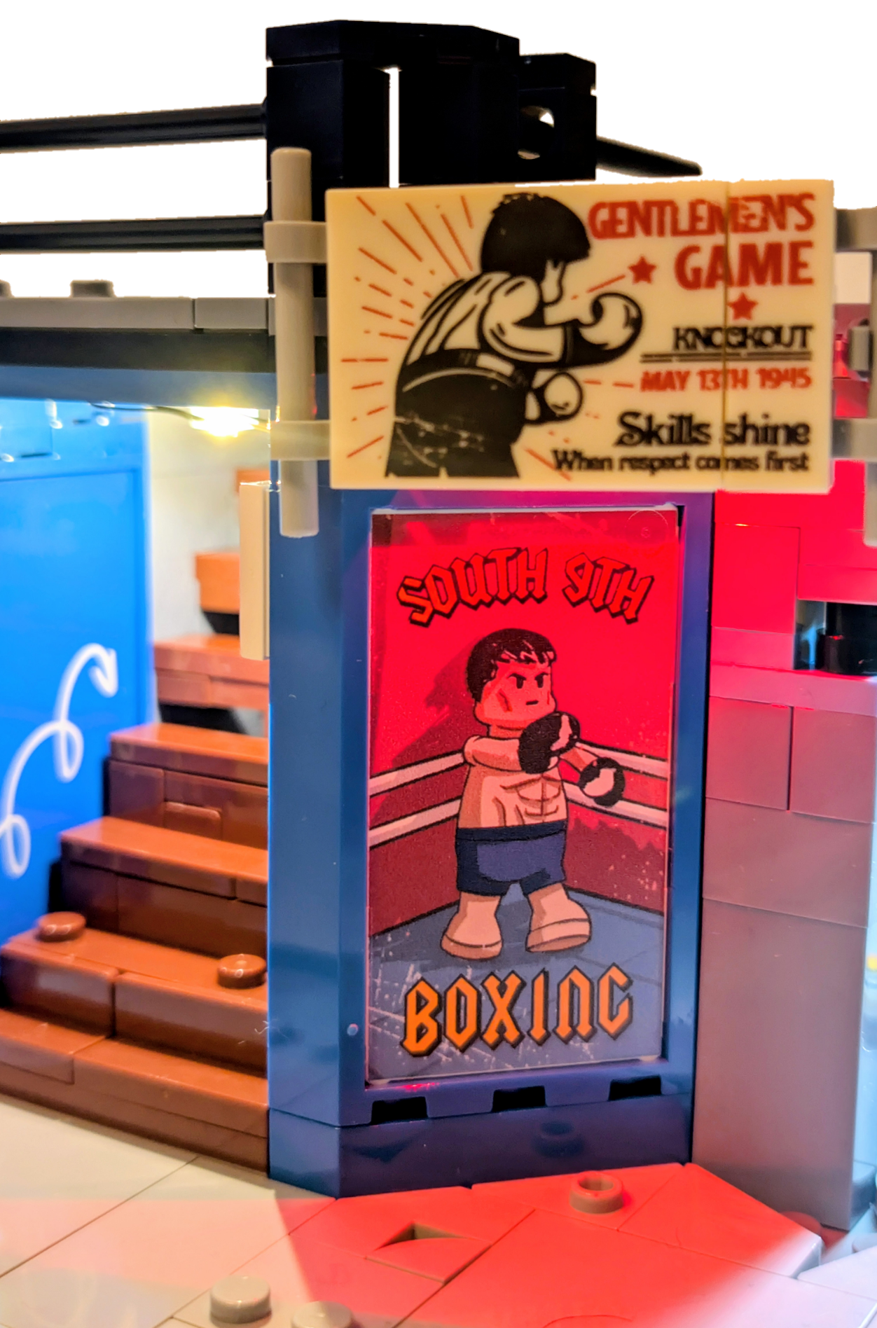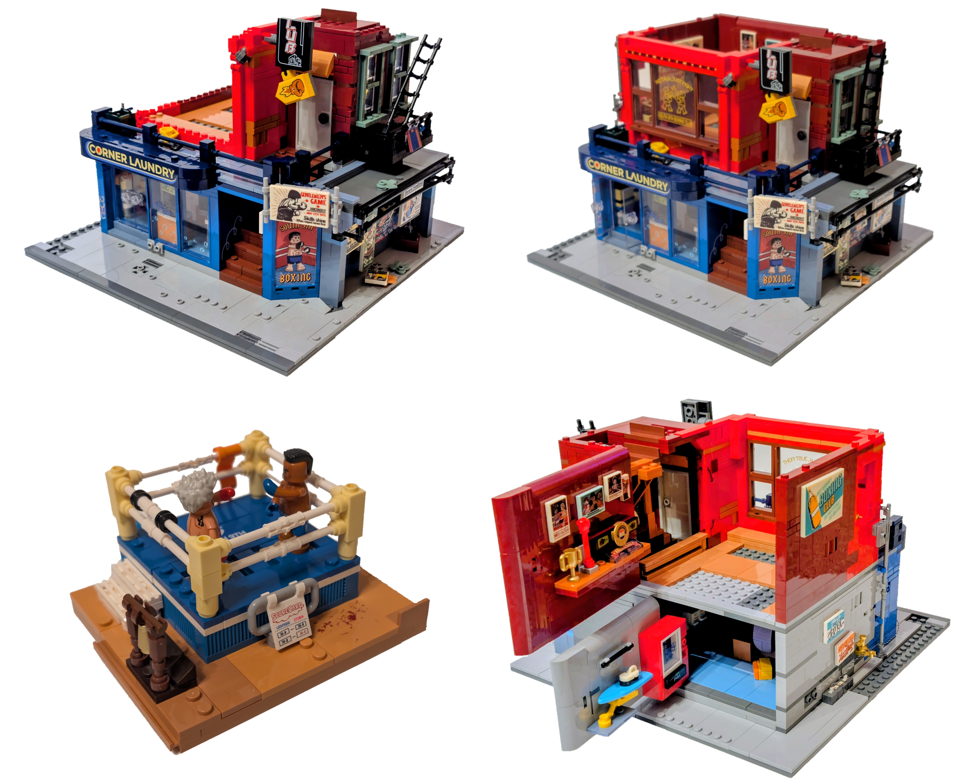 When it comes to modular buildings, LumiBricks are hitting them out the park, with multiple offerings each year putting the big named brand to shame. My City doesn’t know what has hit it this past 12 plus months, with the stunning Art Gallery, magnificent Record Store, thrilling Theatre, to name a few. The latest in the line is the Boxing Club (19009), a set chock-full of details, new locations, and of course lights!