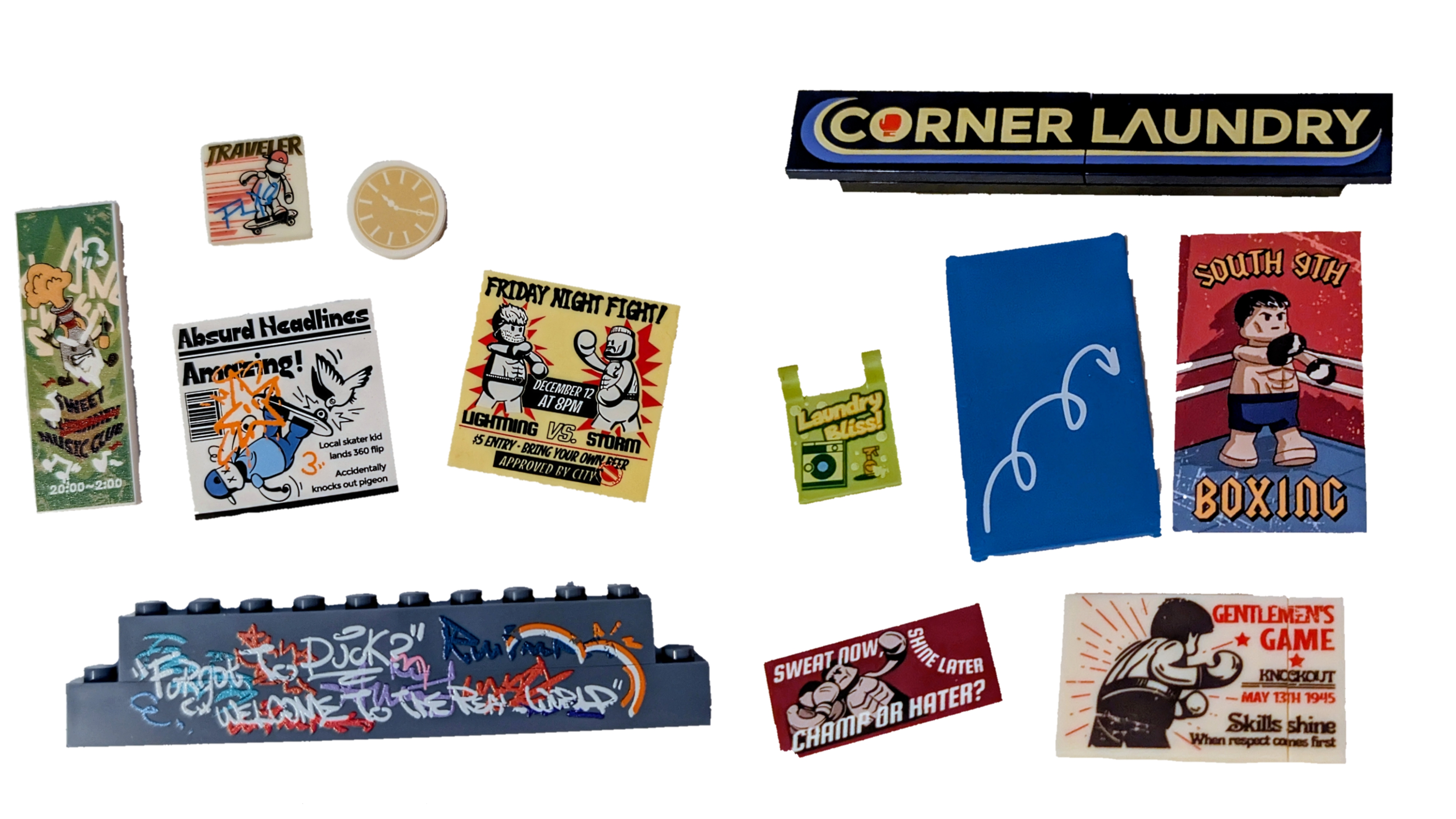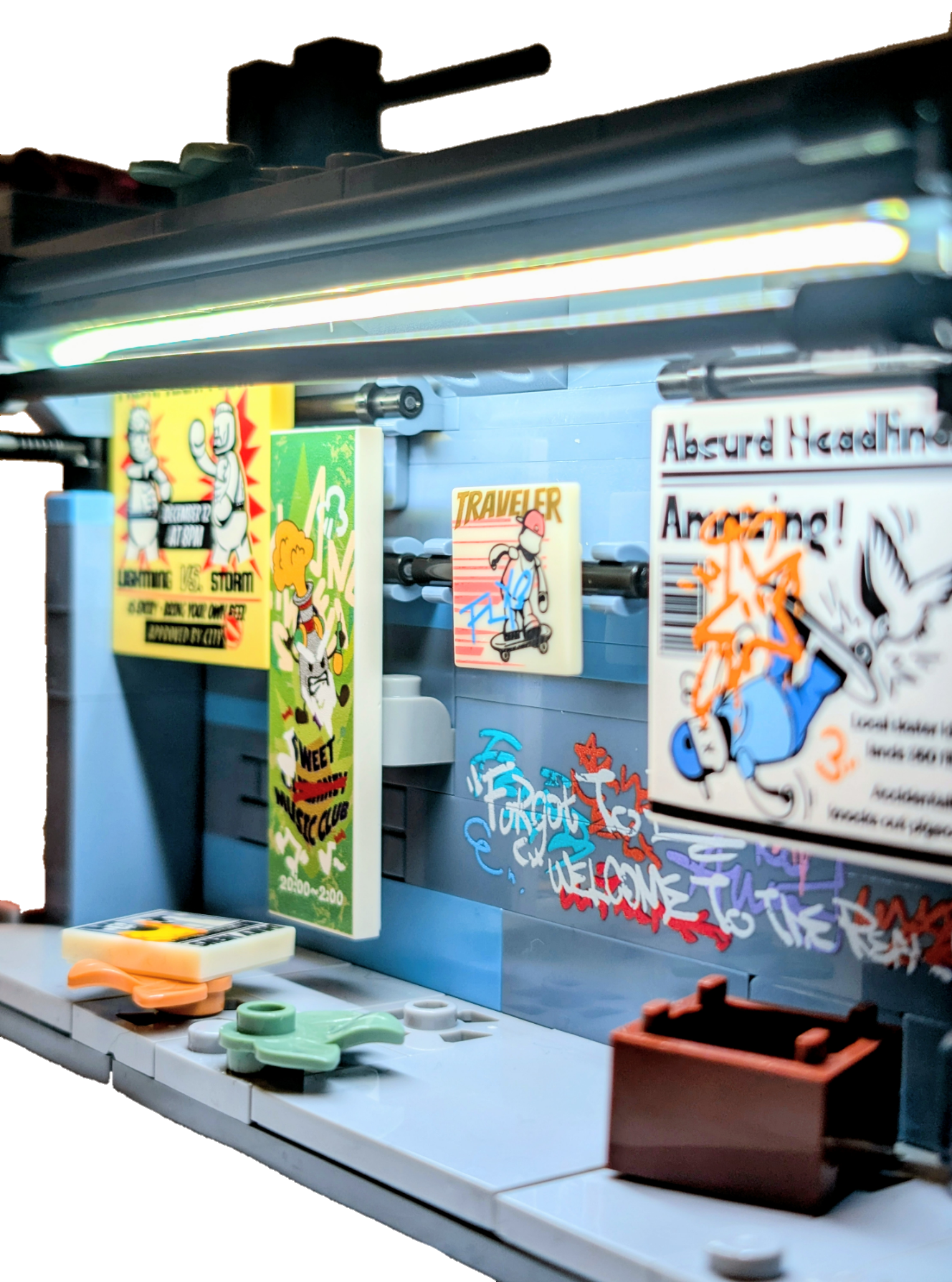 The outside shelter, or Bus Stop, is small but packed with printed tiles, big and small. The strip light is also a nice touch and really brightens the outdoors area. More in the printed elements later in the review.
