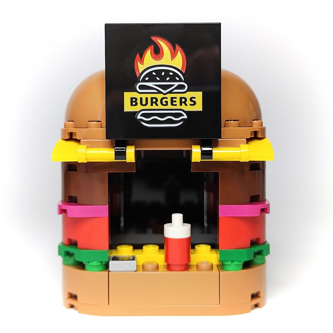 Onto bag 2 now and the Burger shack, in all it’s small but mighty glory. The first thing you see is the ‘Burgers‘ 4×4 printed tile. The logo itself is done wonderfully and again to have such a beautifully print element is great, it really finished the shack off so well.