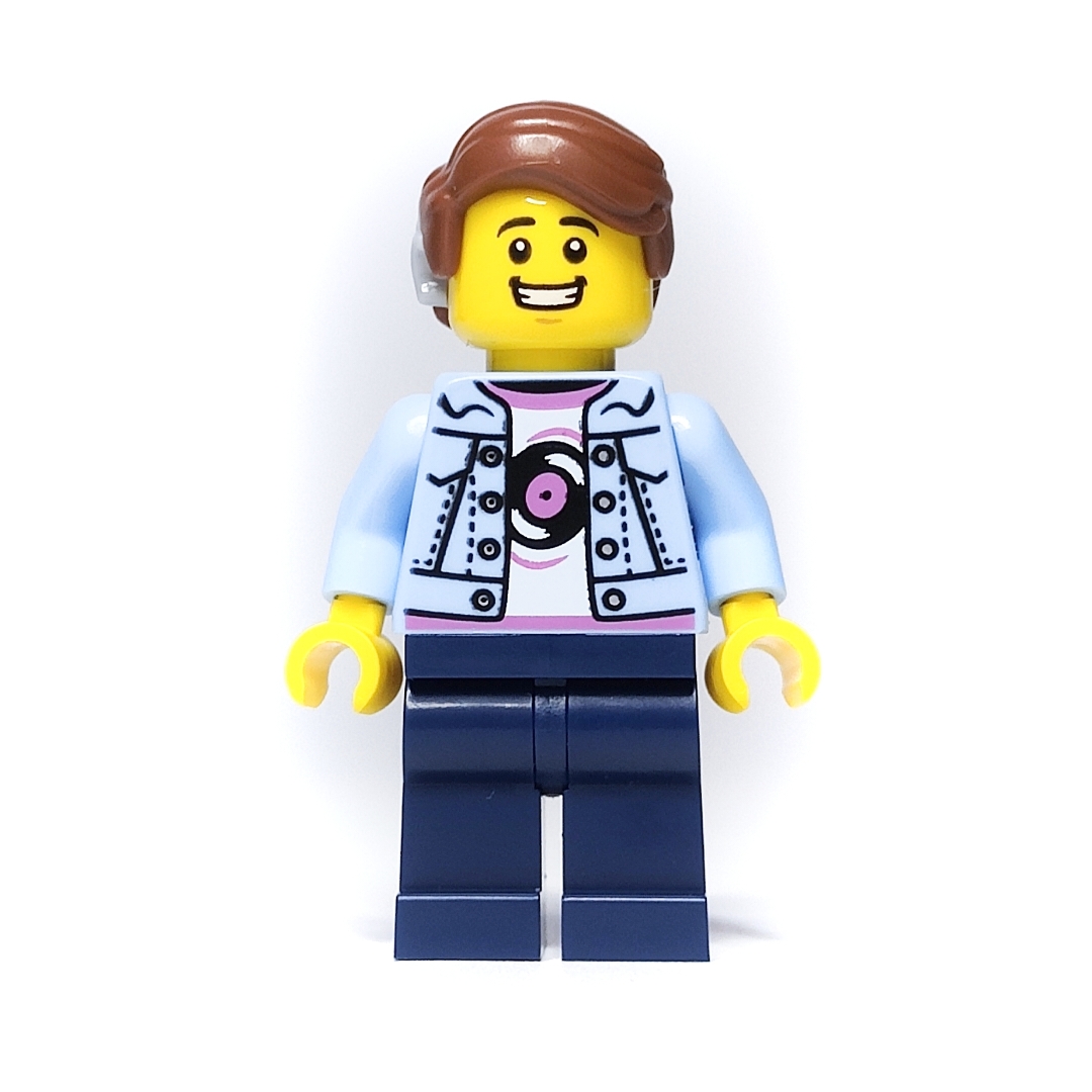 Theo is a very hip & trendy person, the denim jacket, vinyl motif tshirt and dark blue trousers, he really looks the part. The hair piece is great and even includes a Cochleah implant, as seen in a couple of Minifigures already, including the recent Dog Groomer from CMF Series 25.