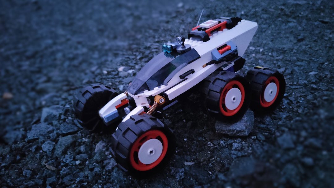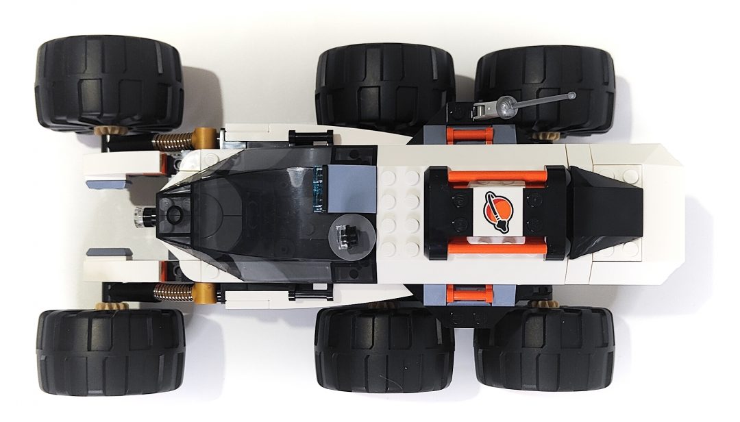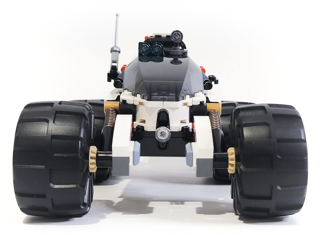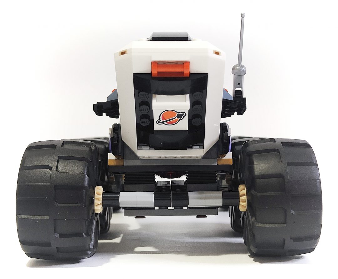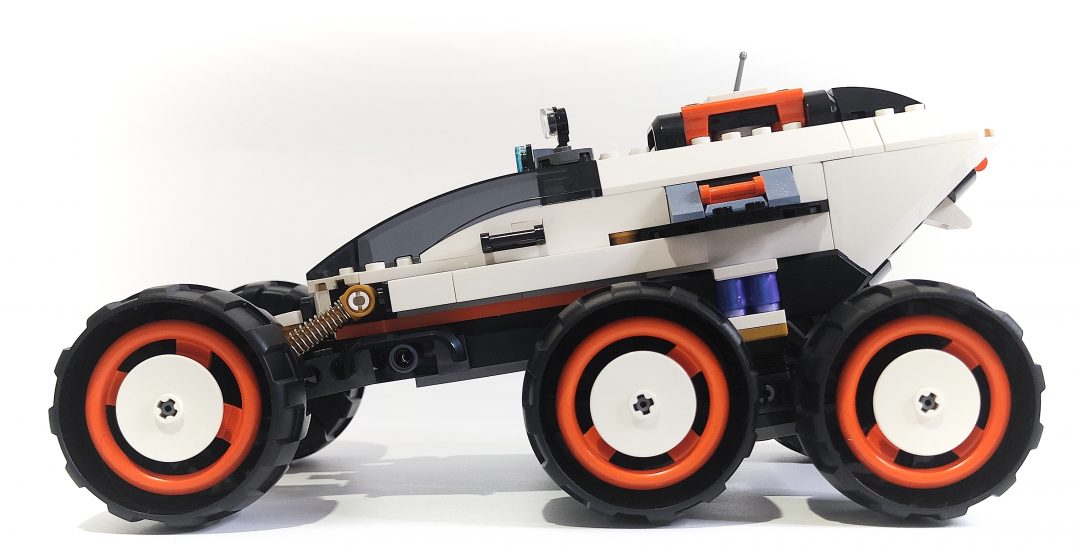 The spring loaded front axis makes the vehicle fun to push down and play with, traversing uneven flooring beit on the table you’re building on or the floor. With the back wheels also being on different axis, they too can rotate individually, combine these and you have a satisfyingly clever LEGO Space Rover!