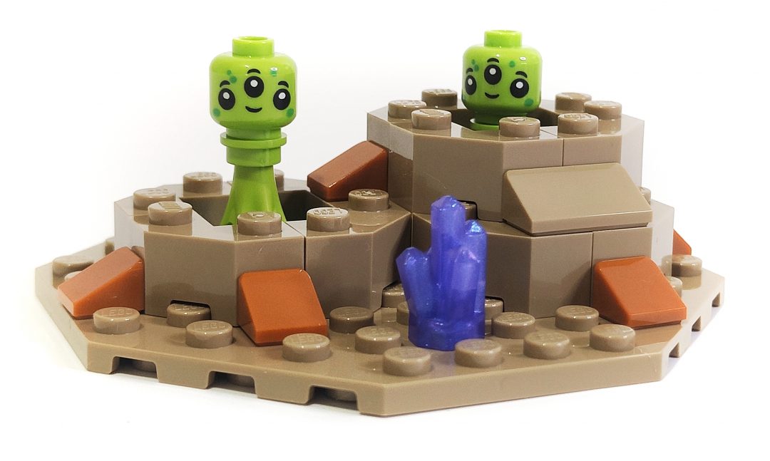 You also get two little alien creatures that sit in the craters on the side build. They are identical in design and look surprisingly cute, with their three eyes and upside down plant element bodies. They’re quite simple in build, with a hollow 1×1 stud holding them together. They do complete the set nicely though and gives the set its Alien Life name.