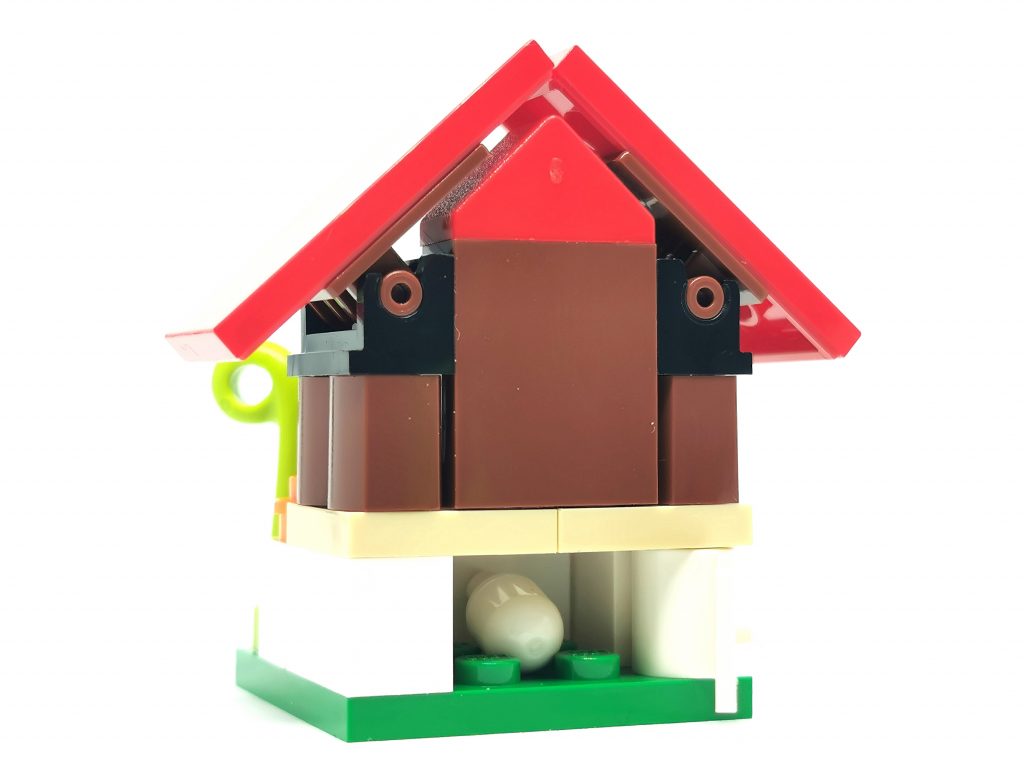 The chicken house measures more than 1” (4cm) high, 1” (5cm) wide and 1” (4cm) deep, a nice size to slip into a child’s backpack with other builds, minifigure and accessories, ready for play wherever they go.
