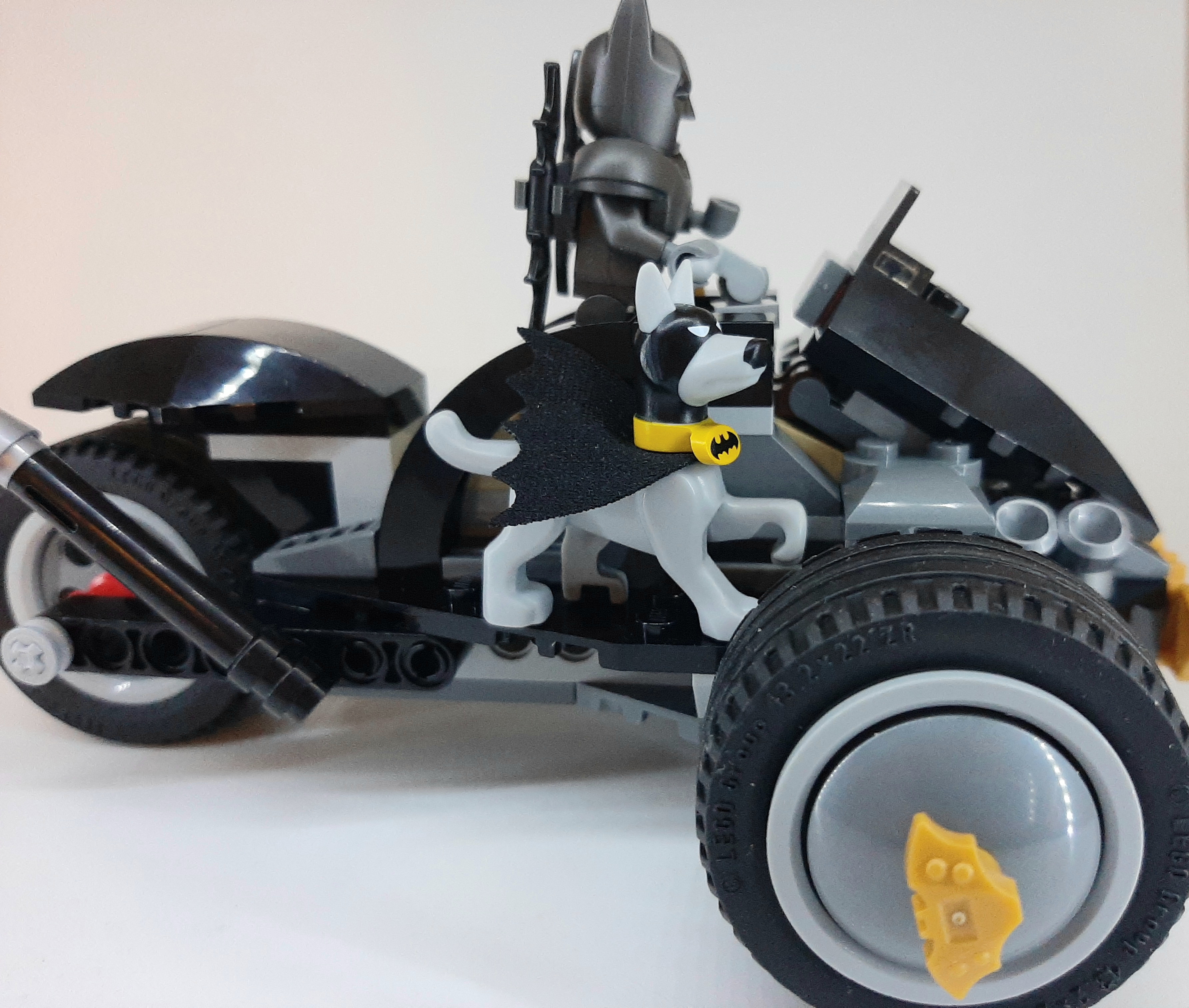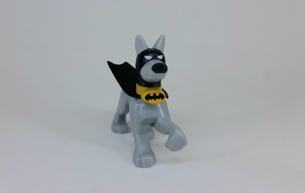 The included gold bat accessories can be wielded by the minifigures. Even Ace can carry one in his paw. I particularly like the shield piece Batman can hold.