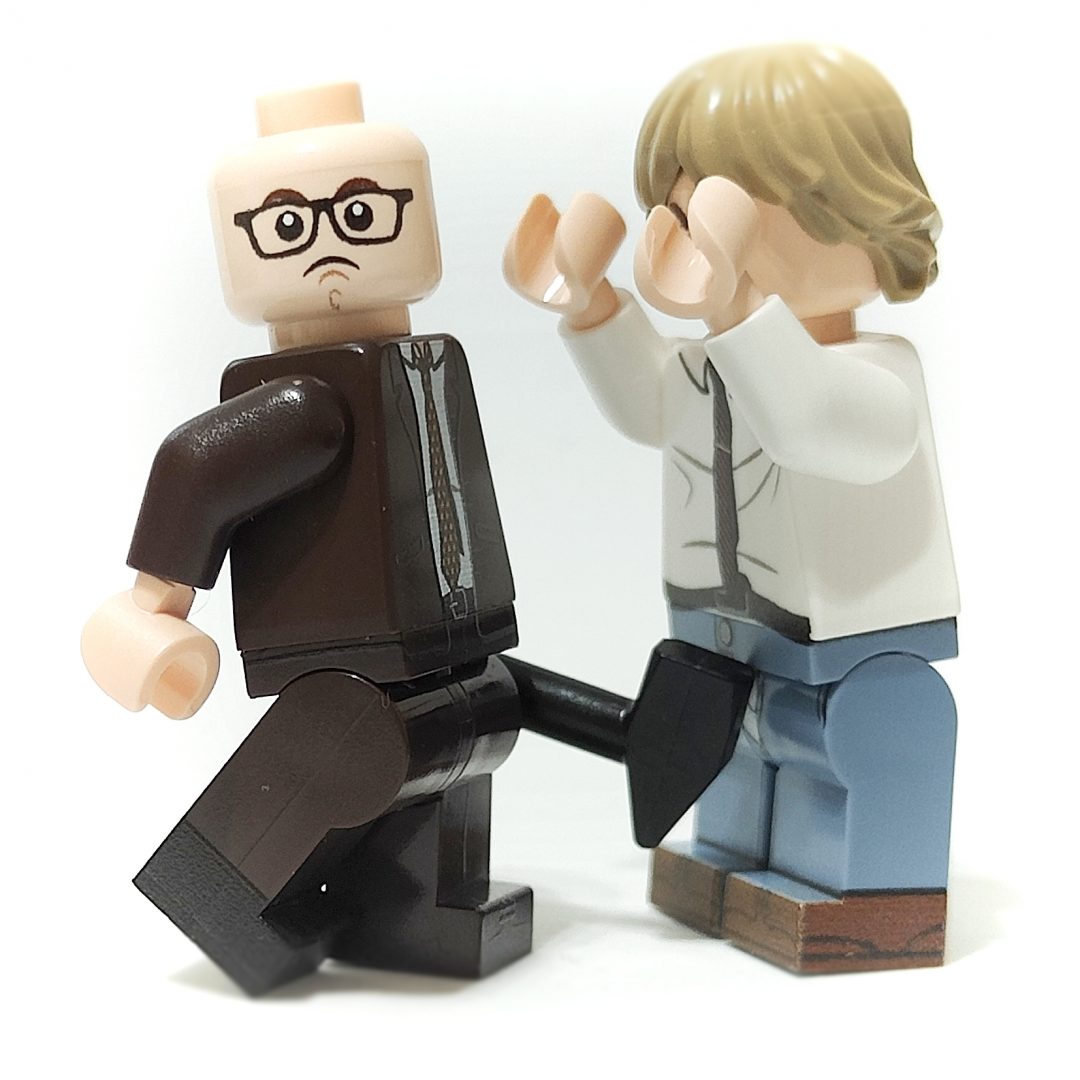 Eddie is a great Minifigure too with his iconic brown suit and matching trilby. This chap used to start most of the violence in the show, bashing Richie with a cricket bat on many occasion. It’s a shame LEGO haven’t produced a cricket bat yet, it would be a perfect accompaniment to this duo. You’ll just have to enjoy this photo of a hammer to the groin instead!