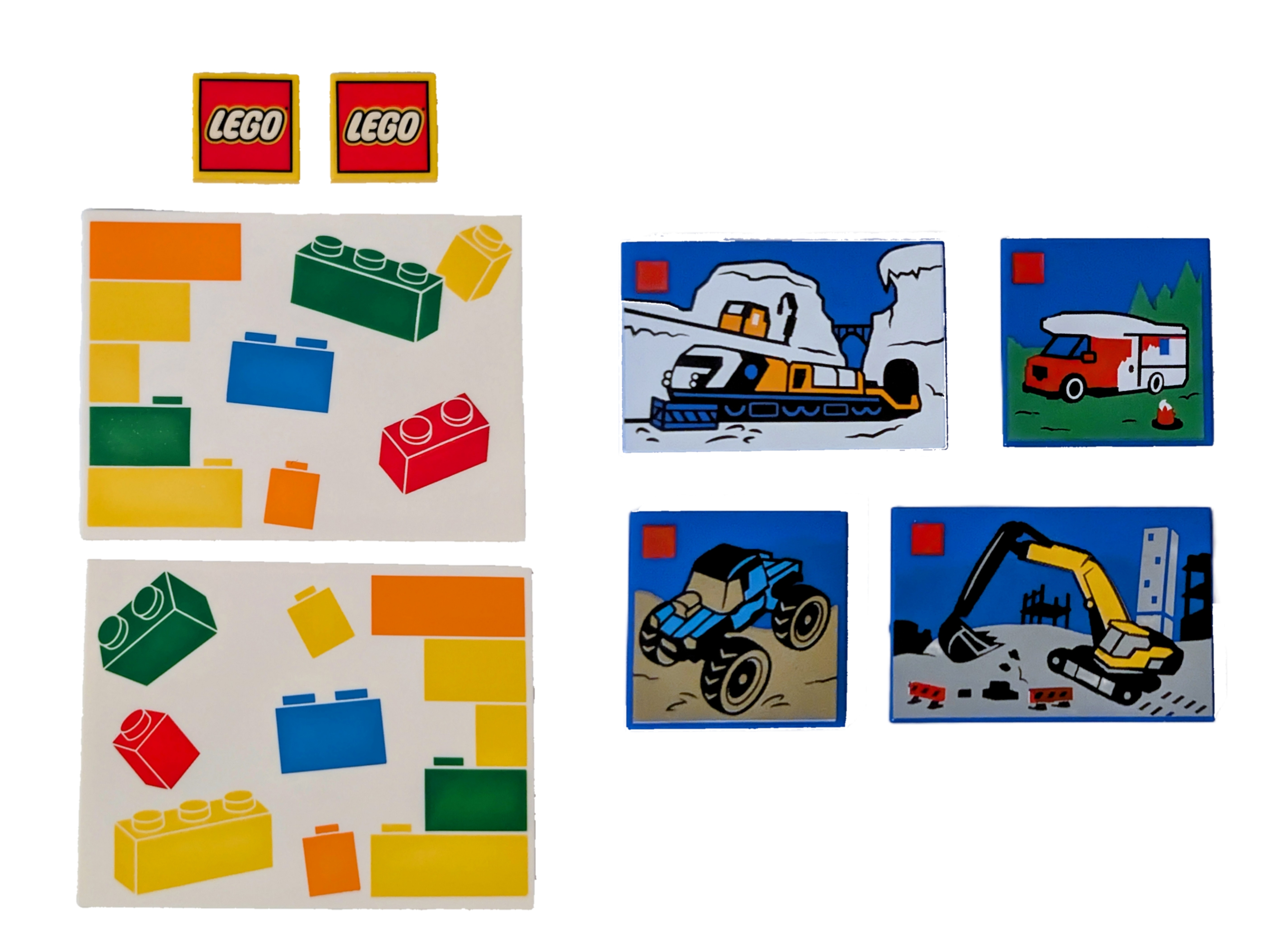 Cracking the bags open the first thing that hits you are four small printed LEGO set tiles. In my opinion, and many other AFOLs, every set should have printed elements, we hate stickers! Just look at the glorious prints below, 2 LEGO logos in 2×2 tiles, 2 larger tiles with Bricks, and the 4 LEGO set tiles, amazing.
